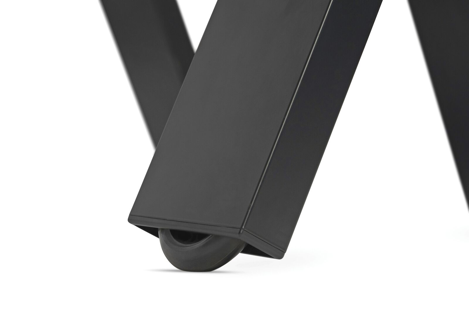 The four legs of BUZZ suggest movement. Large soft gliding castors are semi recessed and ideal for hard and soft surfaces. The legs can be folded flat for convenient storage.