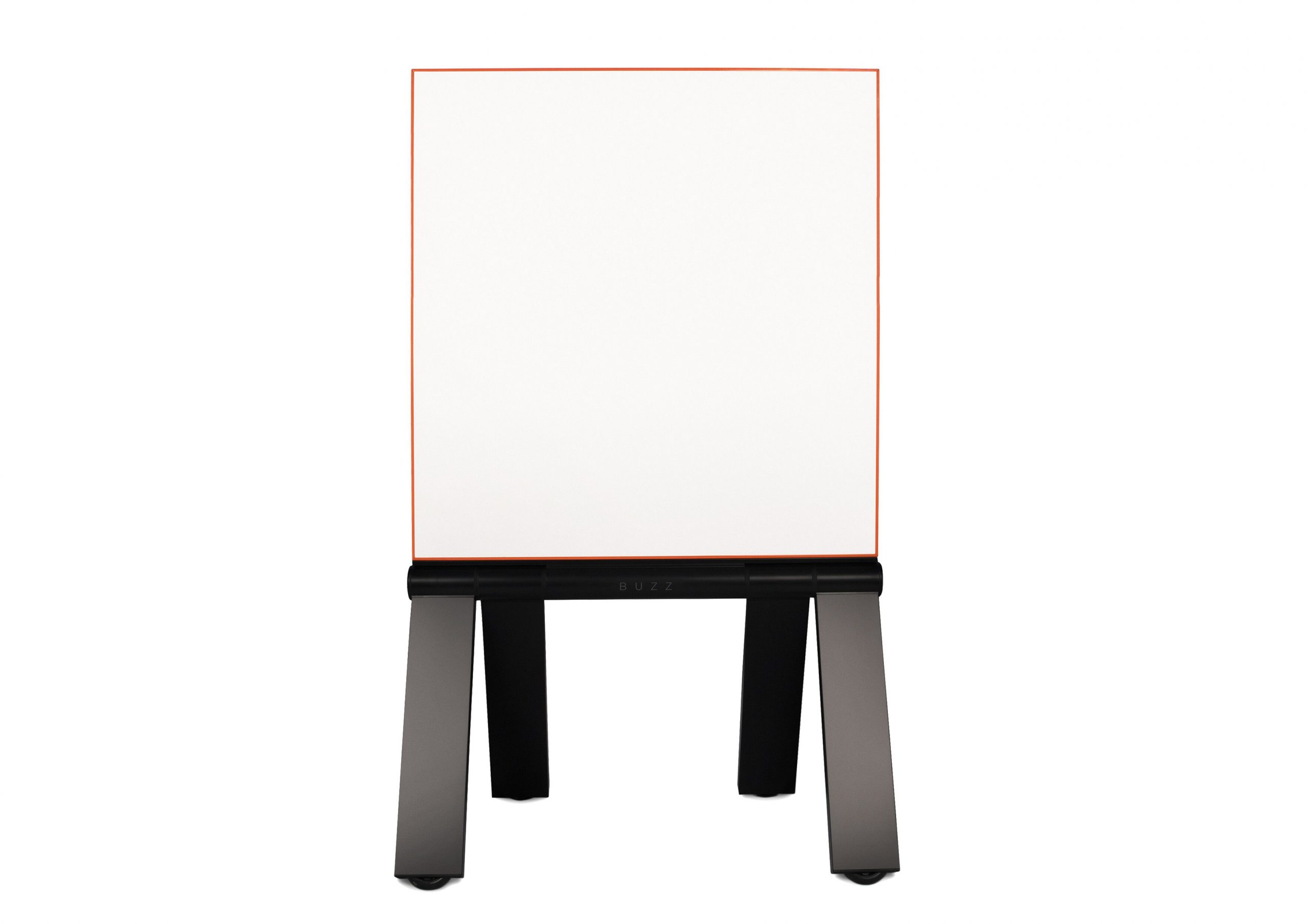 B U Z Z is available in a fixed colour palette. Powder coated orange aluminium frame (RAL 2004) with a complimentary dark charcoal (Pantone 433) supplied for the durable aluminium legs (3mm wall thickness). The orange frame offers a visual beacon to team members