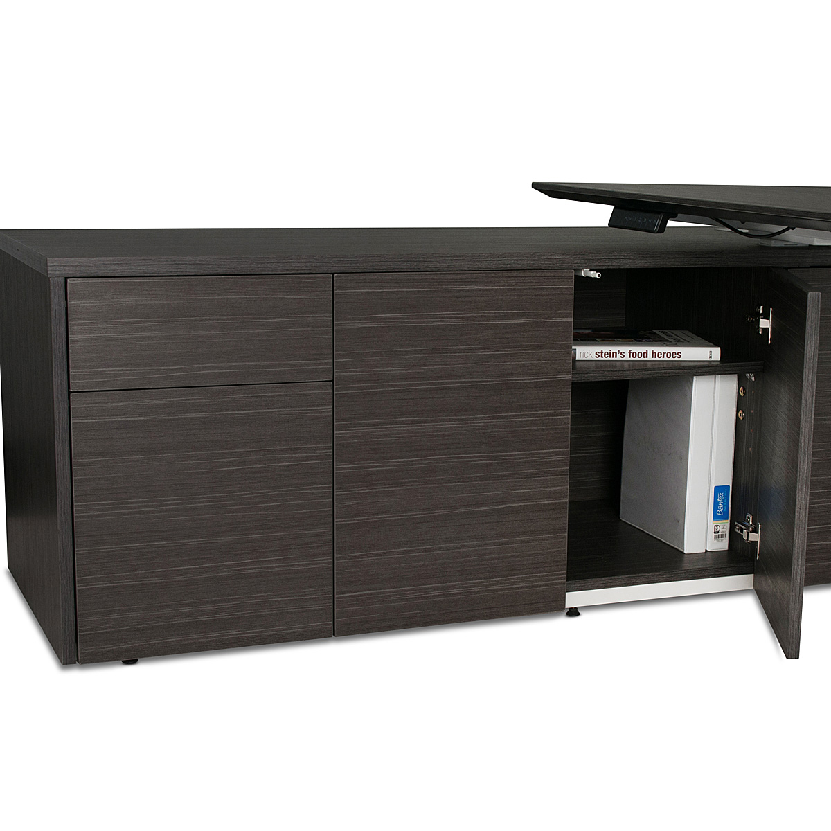Elegant and Professional Kingston Height and Width Adjustable Executive Desk with Mitre Cut Edge. Comes with a choice of 2 Premium Colours also a choice of Left or Right Orientation.