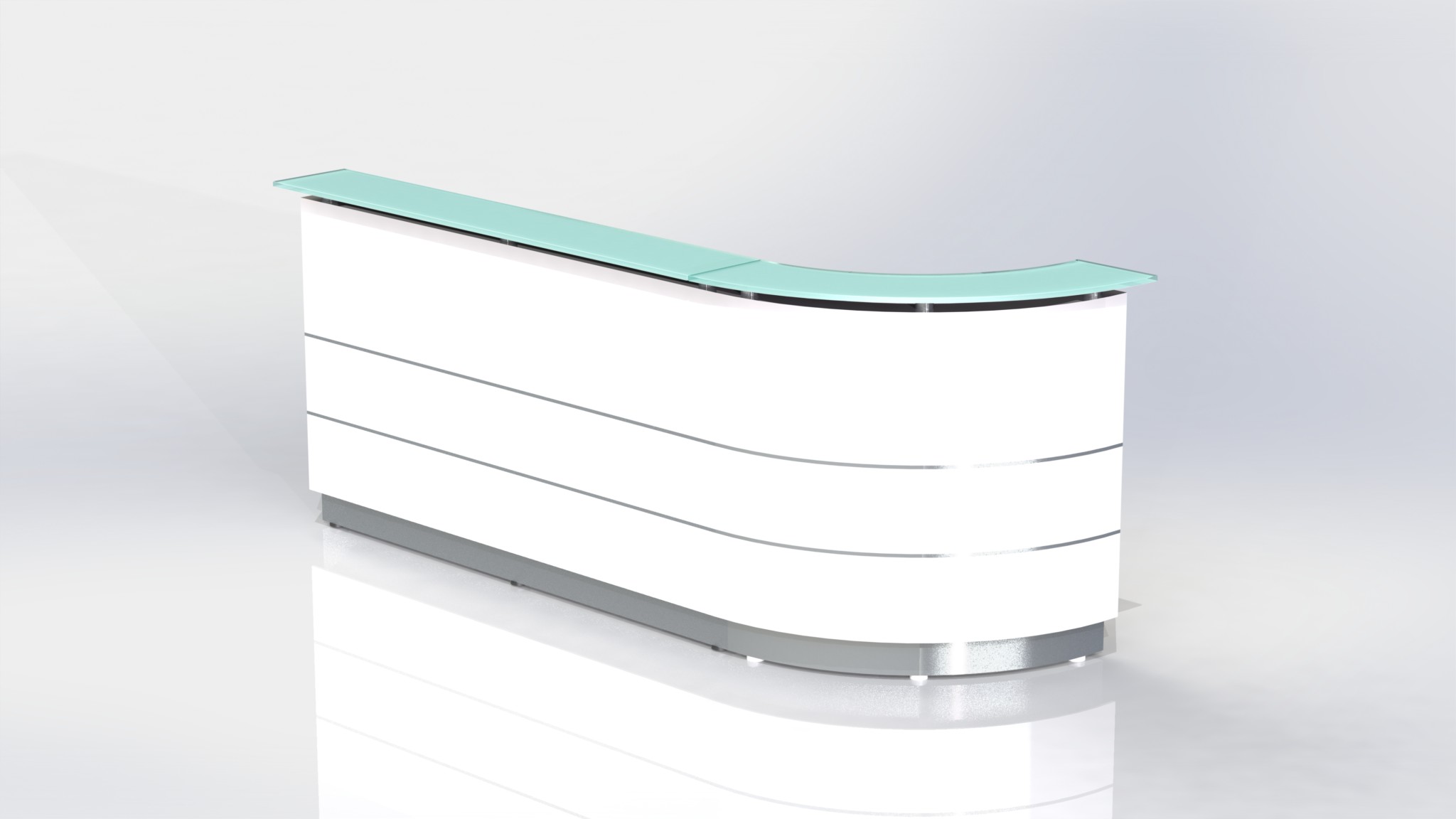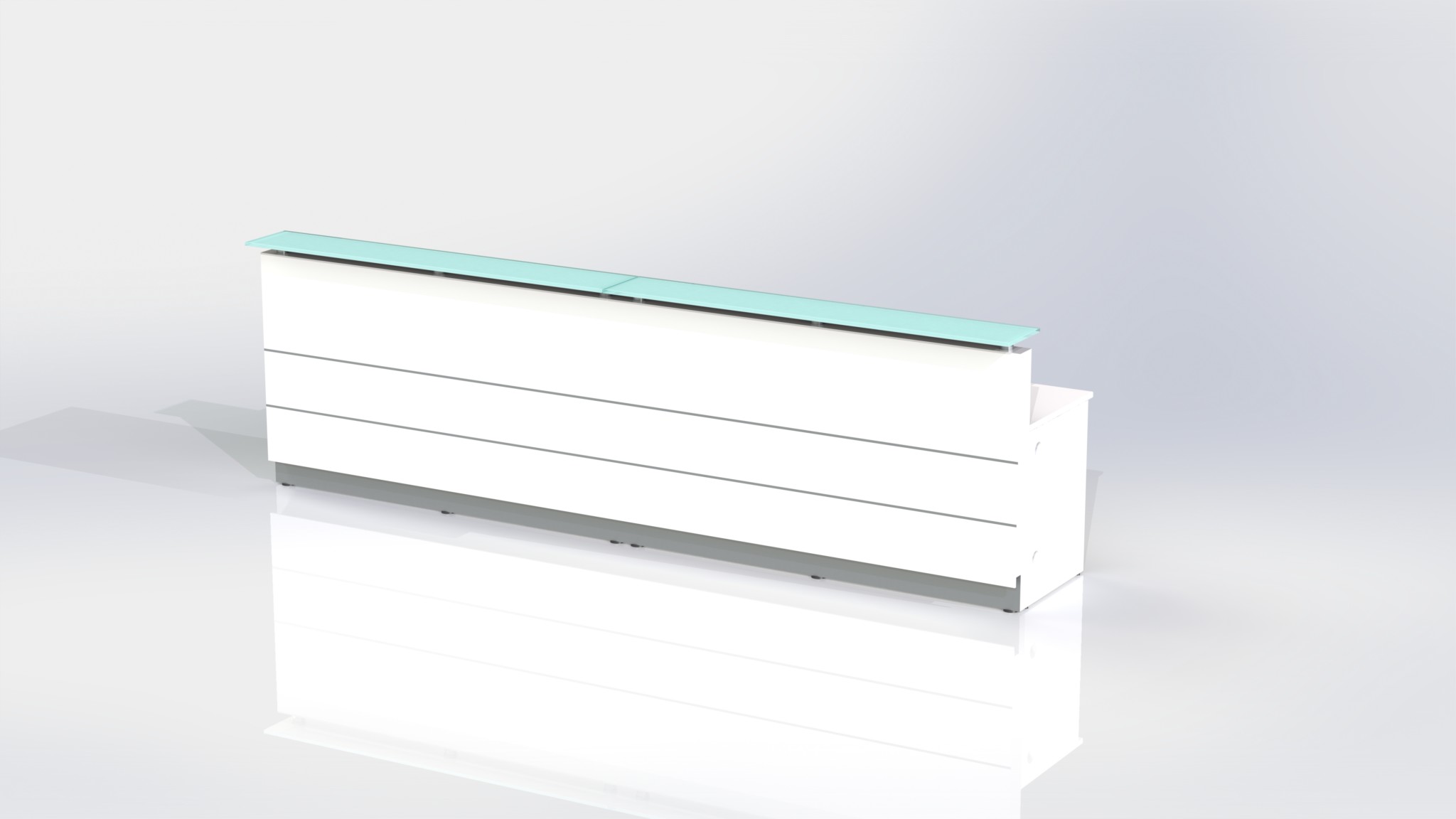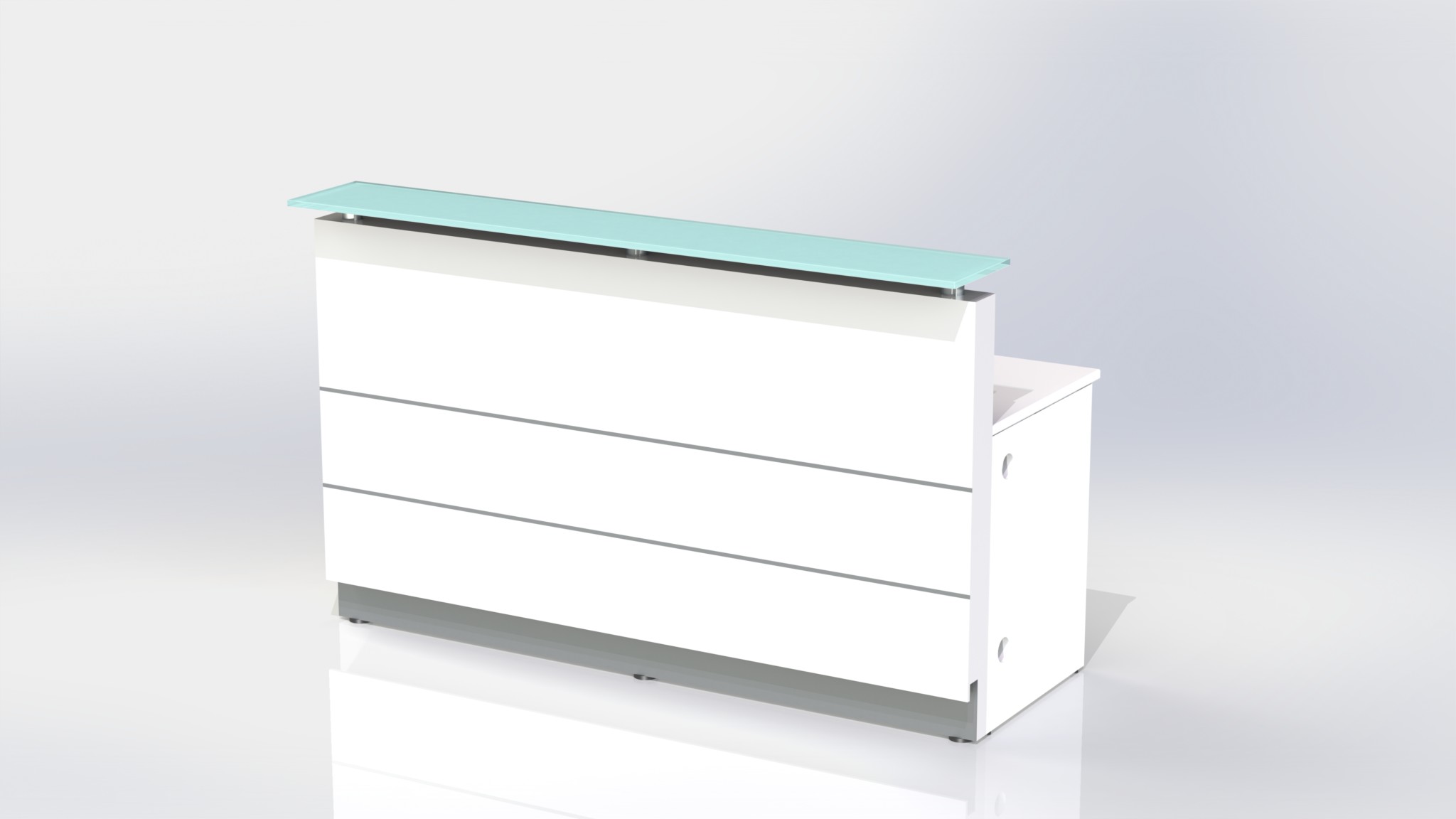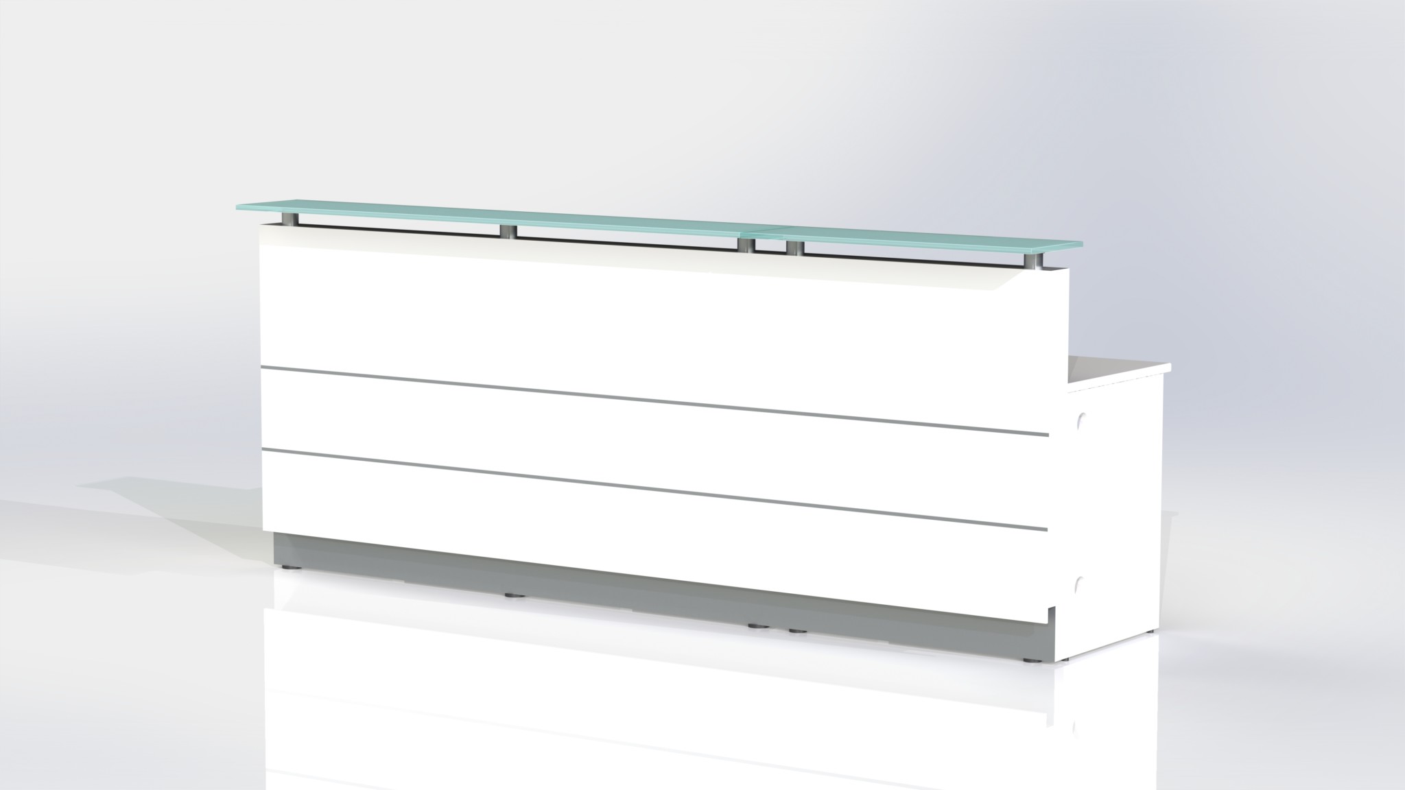 Counter Body: Finished in gloss white or metallic grey 2 pack paint, double aluminium strips and stainless steel kick plate.