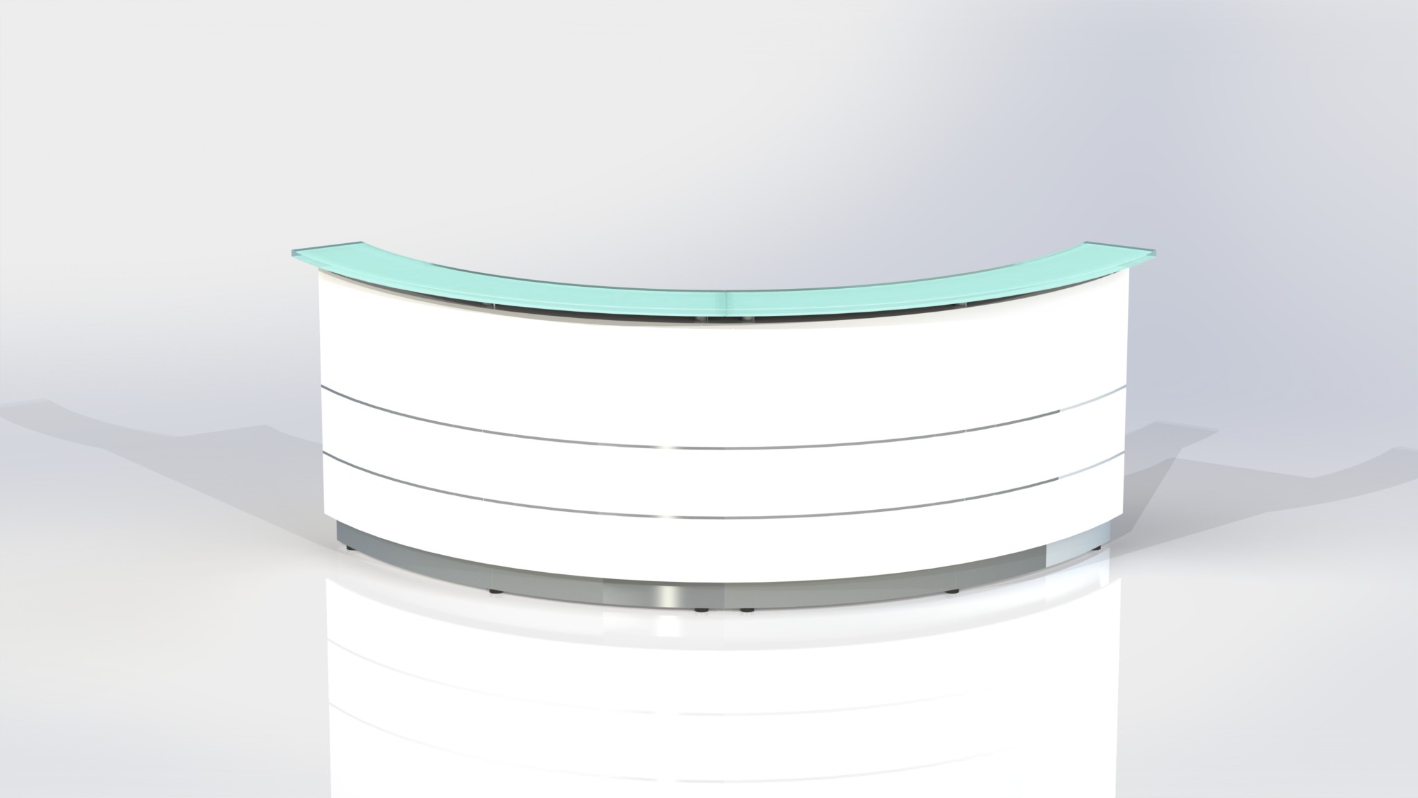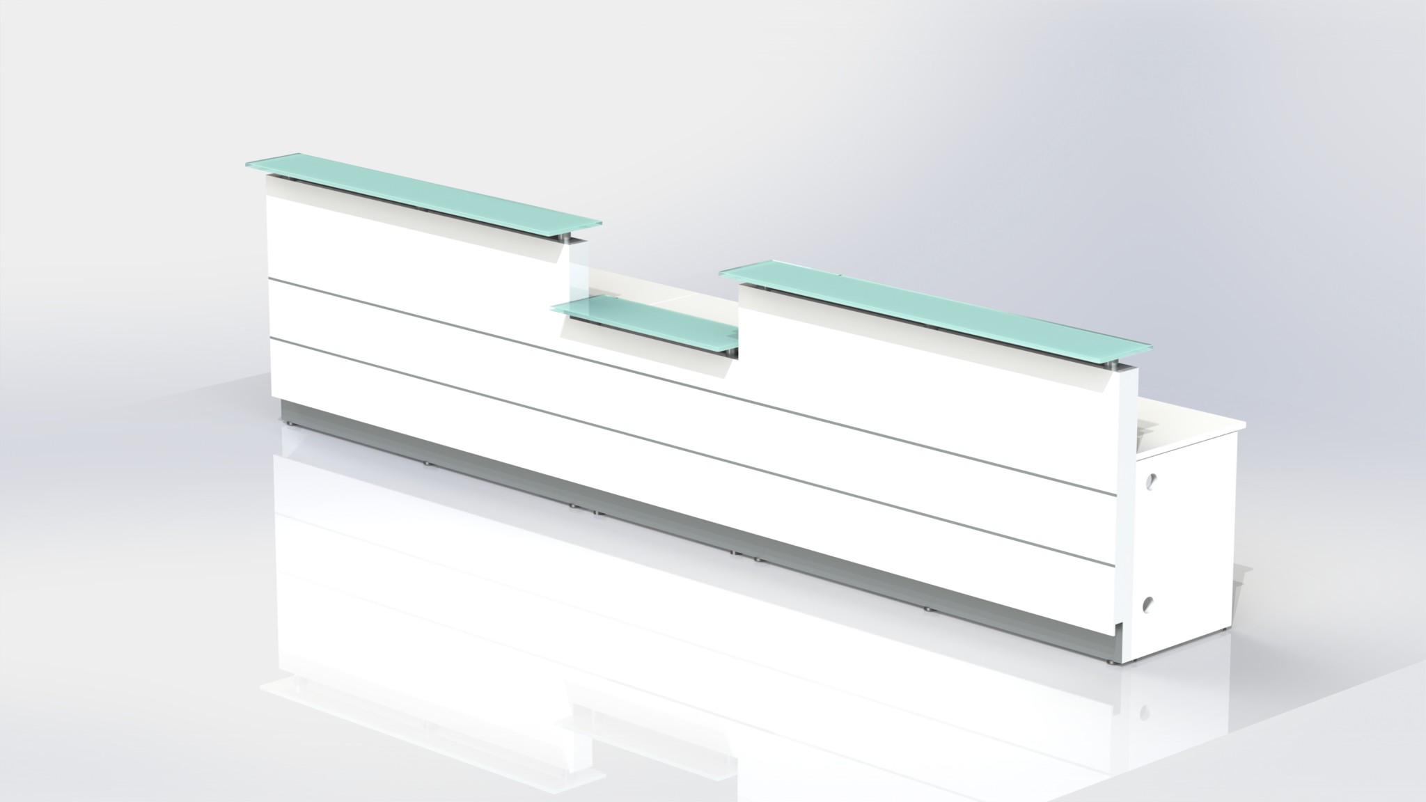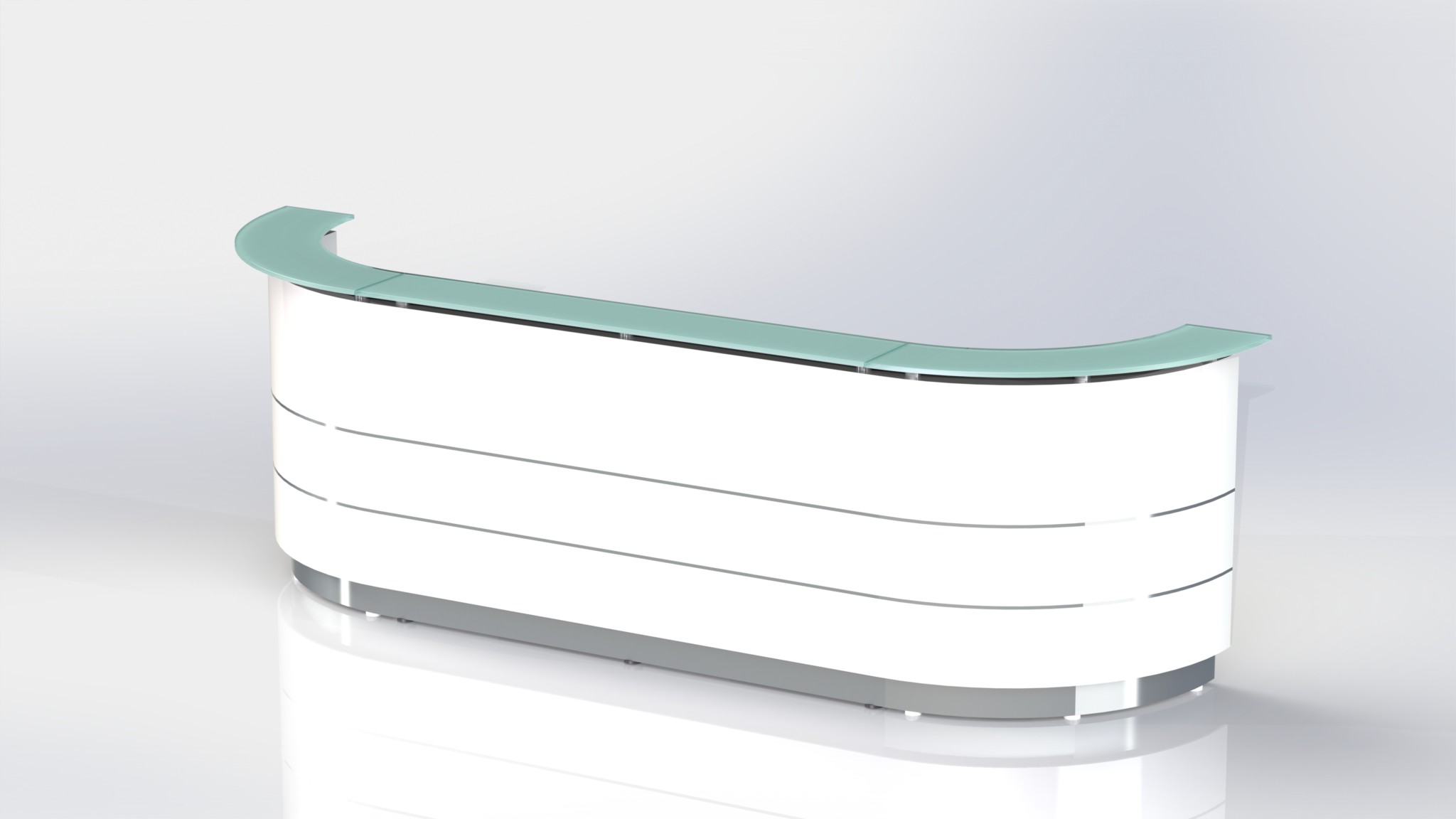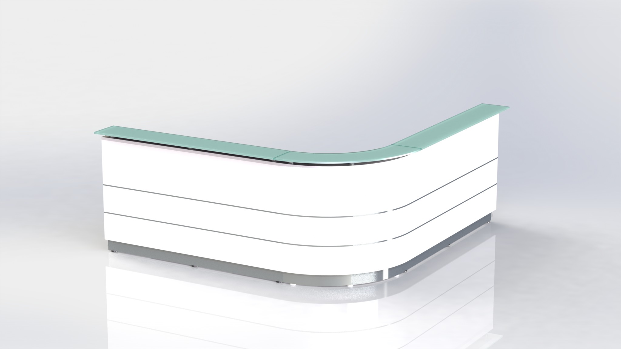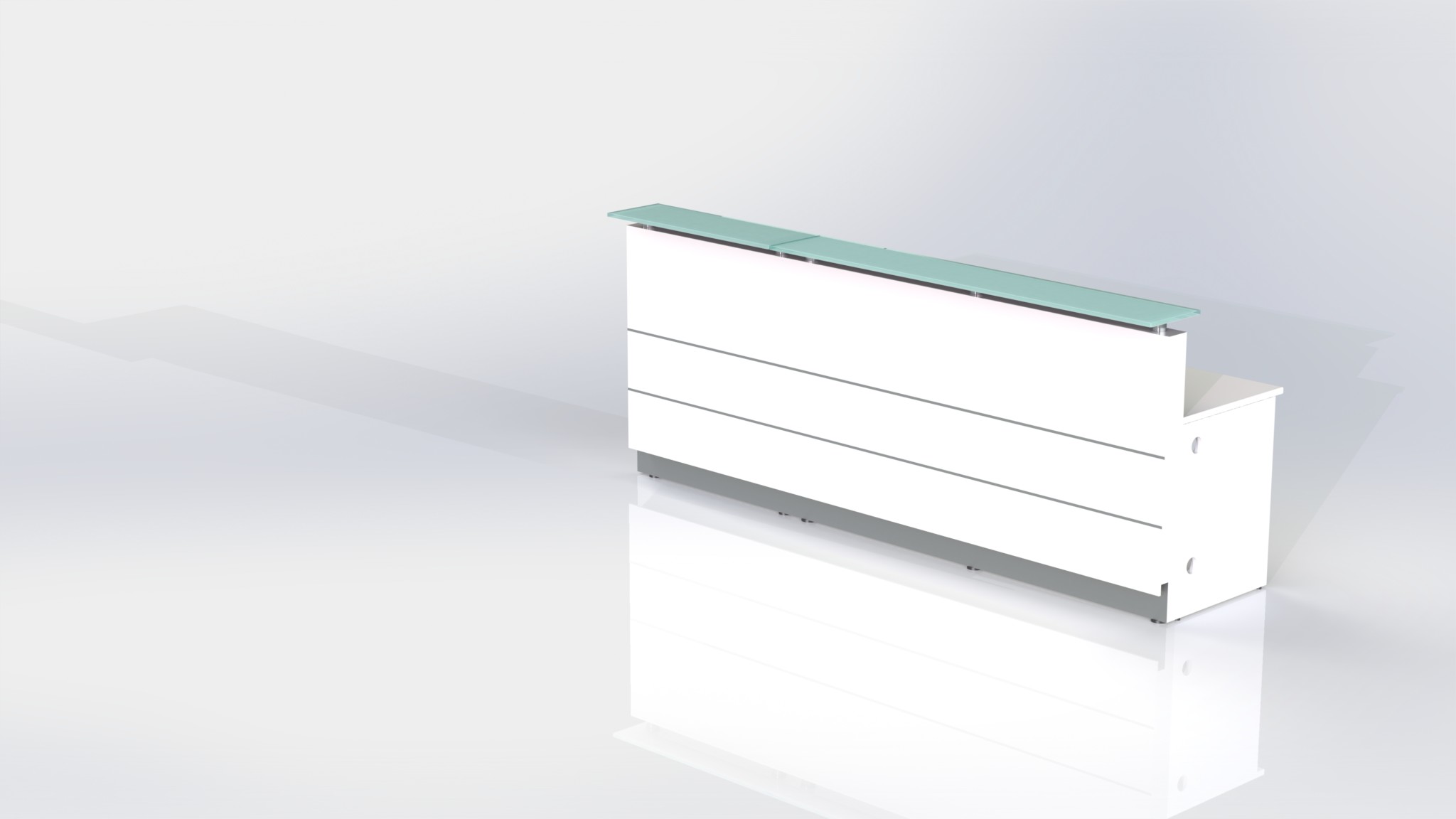 Counter Body: Finished in gloss white or metallic grey 2 pack paint, double aluminium strips and stainless steel kick plate.