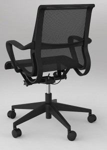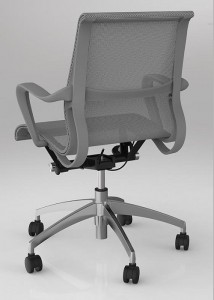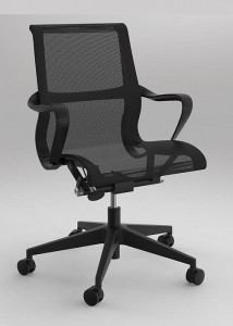 Scroll chair has a full mesh one-piece back and seat. Wire control for up and down adjustment. Contoured fixed armrests. Tension adjustment for chair reclining. It comes in a grey mesh with a chrome base or black mesh with black nylon base.